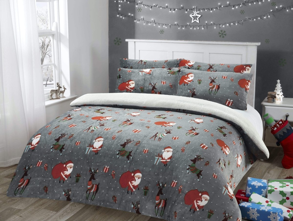 Santa Christmas Presents Teddy Fleece Duvet Set By OLIVIA ROCCO