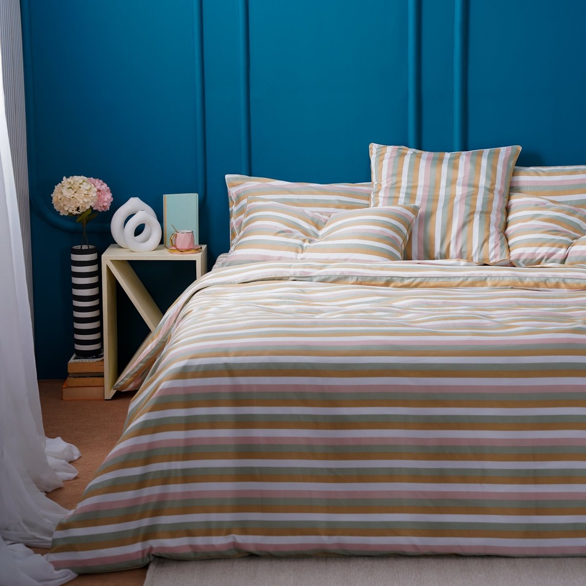 Our striped bedding, features vibrant colours that perfectly harmonise. Each stripe represents a blend of our customers' favourite shades, crafted for exceptional softness and elegance.
