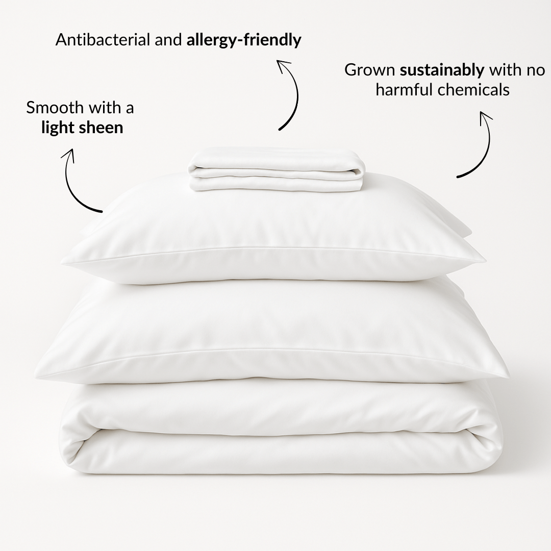 Our Ackly Bamboo range blends bamboo with Tencel™ for a cool-to-the-touch, drapey feel - ideal for warm sleepers. See white sheets and white pillowcases in this fabric.